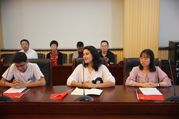 学生工作部部长赵健、校团委书记何国强、电子工程学院党委副书记毕轶慧分别在会上谈了自己观看庆祝大会的感想和体会。