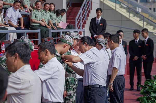 典礼上,陈军斌副校长宣读了《beat365官方网站关于表彰2019级高国庆等225名本科新生奖学金获得者的决定》,校领导为获奖学生代表颁发了证书。同时,为了增强学生的归属感和爱校荣校的意识,此次开学典礼还特意举行了新生校徽佩戴仪式,由校领导为2019级新生代表授予校徽。