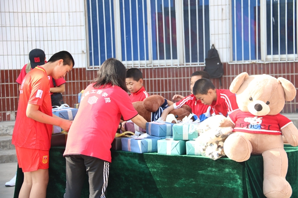 大爱无言,真爱无疆。小朋友们对师生们的到来举行了热烈的欢迎仪式,东周儿童村村民委员会主任杨彪也对大家的到来表示了最热烈的欢迎和衷心的感谢,并充分肯定了本次活动的意义。他表示,这二十多年来,孩子们在和大哥哥大姐姐们相处之后,都逐渐走出了生活的阴影,大都长高了,长胖了,脸上也露出了童年的天真和欢笑。同时,机械工程学院党委书记田党宏也对小朋友们进行了勉励和鼓舞,并表示机械工程学院的全体师生会一直将爱心持续下去。学生工作部部长赵健和人文学院党委书记余小勇代表此行的志愿者把属于孩子们的心愿礼物亲自送到他们的手中。由音乐系和少数民族的同学们为大家带来了古乐合奏《九儿》《春江花月夜》《快乐的麦西来普》《兔子舞》等精彩纷呈的节目,全体师生与孩子们一起互动,共同联欢,一同沉浸在这爱的海洋里。