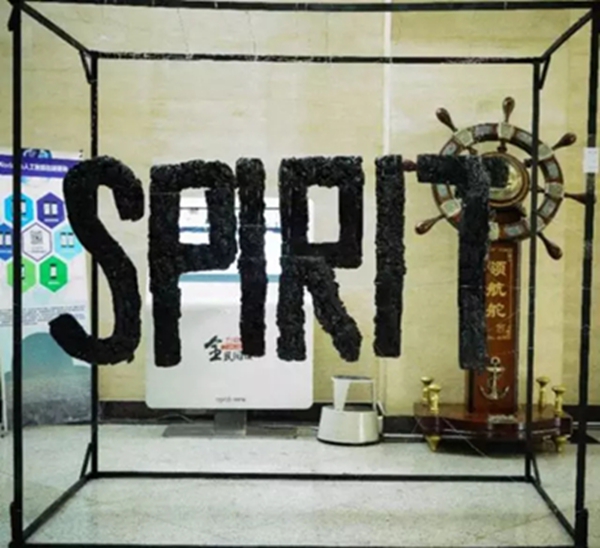 从侧面看,是王进喜的人物头像;从正面看,是“spirit”字样。作品用如此新颖独特的方式阐述着:无论何时,铁人精神都以其不朽的价值与永恒的生命力,激励着世人开拓进取,继往开来。