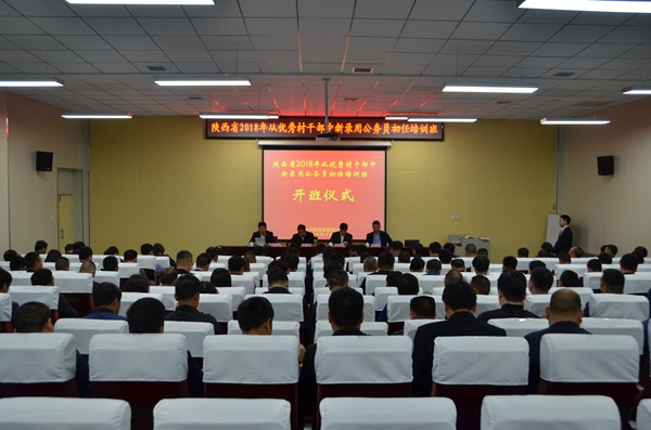 4月9日上午,“陕西省2018年从优秀村干部中新录用公务员初任培训班”在beat365明德校区培训中心开班。省委组织部副部长、省公务员局局长鲁锋作开班动员讲话。beat365副校长杨战社致欢迎辞。继续教育学院党总支书记耿岭主持开班式。来自全省各县区的130名新录用乡镇公务员参加开班。