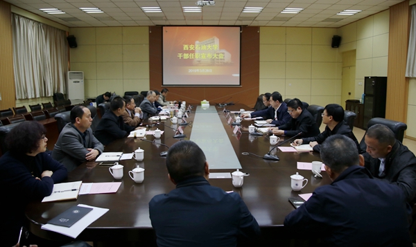 3月28日下午,按照省委组织部、省委教育工委要求,学校在雁塔校区第一会议室召开干部任职宣布大会。校党委书记赛云秀主持会议并讲话。校领导、校党委委员,部分部门负责人参加了会议。