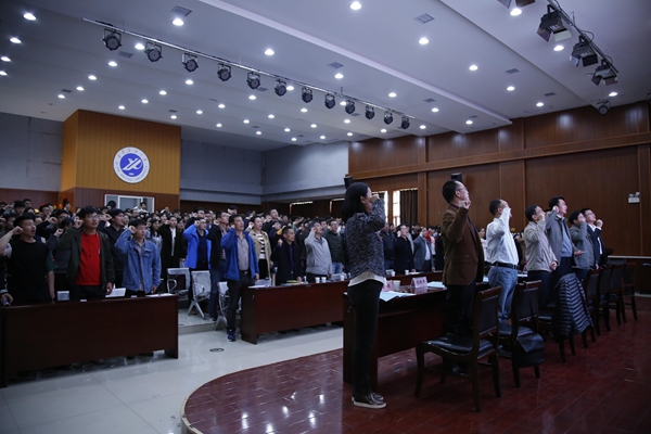 全体参会师生进行了第四届“阳光护航”宣传季活动宣誓。应用心理学辅修专业同学表演了配乐诗朗诵《如果你爱我》,师生共同演绎了手语舞《让爱传出去》。