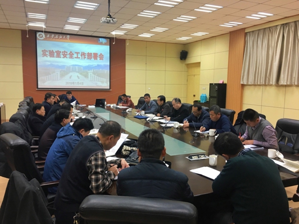会议首先传达了国务院安全生产委员会办公室于1月3日召开的“高等学校实验室安全管理工作视频会议”精神。实验室管理处处长张君涛通报了冬季安全大检查中实验室安全抽查工作的情况,并根据《beat365官方网站关于进一步加强实验室安全工作的通知》文件精神,对近期开展学校实验室安全专项大检查进行了具体安排。保卫处处长杨西坤传达了省委教育工委、省教育厅有关近期校园安全管理的文件精神,并对冬季安全大检查中其他区域安全抽查的情况进行了通报。党政办公室主任何军民对学校2018年“三排查、三落实”工作情况进行了通报和说明。