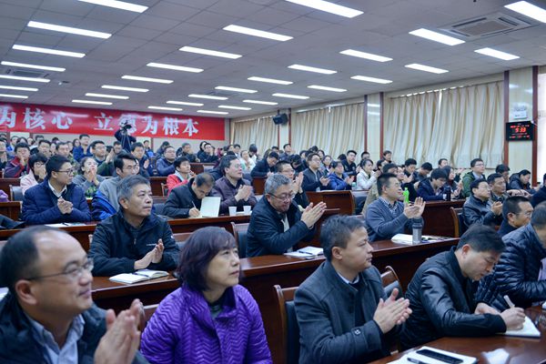 12月7日, “时代楷模”、“全国师德标兵”、“全国优秀教师”曲建武教授应邀来校作《做大学生人生成长的指导者和引路人》专题报告。报告会由党委宣传部和学工部共同组织,校党委副书记张木主持,全校各院系书记、副书记、辅导员,学生工作部、校团委全体工作人员和马克思主义学院教师参加了报告会。