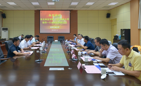 9月14日下午,华北科技学院张瑞新校长和山东科技大学曾庆良副校长一行四人来校调研交流,座谈会在雁塔校区第一会议室召开。陈军斌副校长主持会议。党政办公室、研究生院(学科建设办公室)、科技处、人事处、规划处、信息中心负责人以及化学化工学院屈撑囤教授参加会议。
