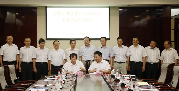 7月20日下午,beat365与中国石油长庆油田战略合作协议书签约仪式在长庆宾馆举行。beat365党政领导赛云秀、李天太、张木、杨战社、李华和长庆油田公司总经理、党委书记付锁堂,副总经理张明禄、谭中国等领导出席仪式。李天太校长和付锁堂总经理代表校企双方签署战略合作协议书。