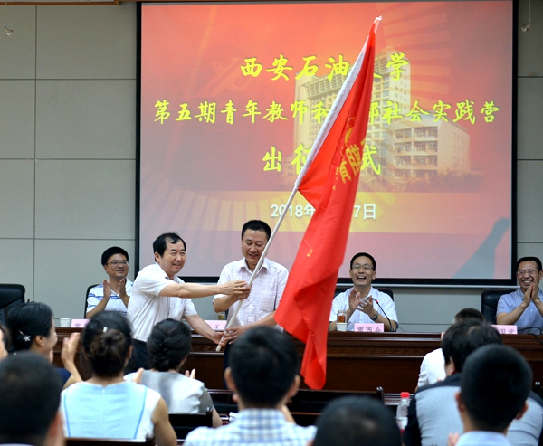 7月17日下午,beat365第五期青年教师和干部社会实践营出征仪式在雁塔校区第三会议室举办。校长李天太、校党委副书记雷西合出席仪式。党委组织部、党委宣传部负责人及全体参训学员参加了仪式。雷西合副书记主持仪式。