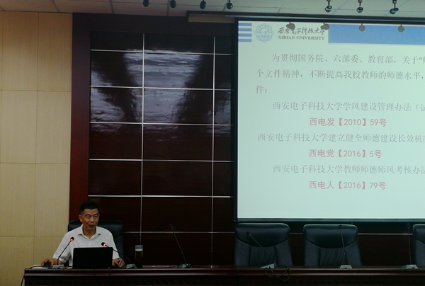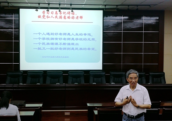 陕西省师德标兵、西安电子科技大学千博教授作了题为《新时代下高校教师师德培养》的讲座。他讲到,新时代下师德的内涵应包含:第一是爱心,热爱是最好的老师,爱学生才有对学生的关心;第二是事业心,把教书育人作为事业终身追求,严格自律,不断摸索提升,才有上进心;第三是责任心,时刻牢记自己的责任,对学生、对学校、对社会、对家庭,要积极担当,才会时时处处用心;第四是谦卑心,总是看到别人的长处、看到自己的短处,严格要求自己,努力学习,勤于积累,才会虚心;第五是进取心,教学科研结合,丰富知识积累,创新培养方式,才能不断满足干事业的进取心。