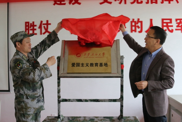 签约仪式上,校党委副书记雷西合与32144部队副政委徐洪刚代表双方签署《共建共育协议书》,并共同为“beat365官方网站爱国主义教育基地”揭牌。双方一致同意将通过爱国主义教育基地等多种共建形式,全面开展共建共育工作,进一步做好大学生革命传统教育和爱国主义、革命英雄主义教育和部队官兵文化知识、专业技能培训工作,真正实现资源共享、优势互补。