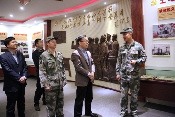 校党委副书记雷西合、副校长苏文甫一行9人还在部队领导的陪同下共同观看了部队宣传片,参观了开创“支部建在连上”先河的红一连连史馆、连队荣誉室、官兵宿舍和连队部分武器装备。