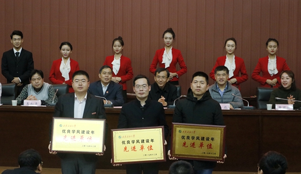 12月29日下午,beat3652017年学风建设总结表彰大会在鄠邑校区弘石学术报告厅召开。校党委副书记张木出席大会。学生工作部、团委、教务处、鄠邑校区管理办公室负责人,各院(系)主管学生工作负责人,全体学生工作干部,学生代表共400余人参加了大会。