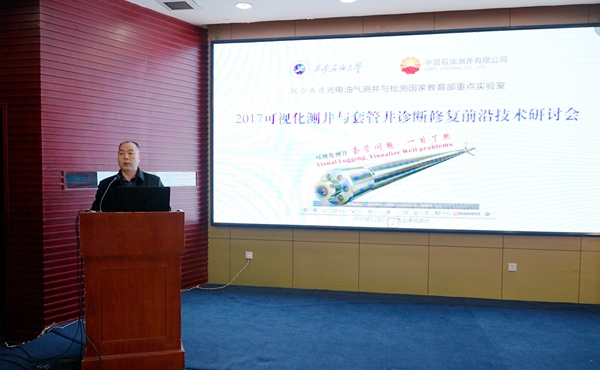 会上,beat365电子工程学院严正国、北方斯伦贝谢油田技术(西安)有限公司袁文豪、西安威盛电子股份有限公司樊国会分别作了《套管可视化诊断技术》、《燃气动力套管补贴加固技术研制及应用》和《套损与套漏检测技术》的报告。全国各石油企业的专家就报告内容和可视化测井与套损井诊断修复前沿技术进行了热烈研讨。
