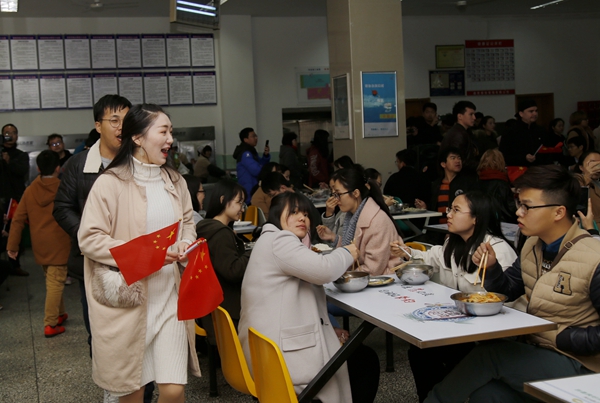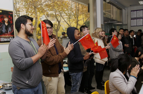 《走进新时代》《歌唱祖国》《茉莉花》……一首首歌曲脍炙人口,耳熟能详。12月1日中午,由党委宣传部、音乐系、国际教育学院、研究生院联合主办的“红歌快闪”欢唱会在雁塔校区学生餐厅举行。活动吸引了来自哈萨克斯坦、土库曼斯坦、巴基斯坦、乌干达、坦桑尼亚等6个国家的50名师生参加,他们通过“快闪”“网络直播”等新颖形式,结合经典红歌,唱出了对新时代的热爱,唱响了共产党好、社会主义好、改革开放好、伟大祖国好的主旋律,令人耳目一新,赢得了就餐师生的阵阵掌声。