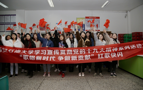 “红歌快闪”活动仅仅是beat365官方网站学习宣传贯彻党的十九大精神的系列活动之一。学校将学习宣传贯彻党的十九大精神作为当前和今后一个时期的首要政治任务,通过中心组学习、专家报告会、组织生活会、青年教师座谈会、学生党员座谈会等形式,通过报纸、广播、电视、网络、微信、橱窗等多种媒体,注重网上网下全覆盖,积极创新形式,紧贴青年学生实际,运用H5、图解图说、网络直播等接地气、形象化、通俗化的方式,注重在春风化雨、润物无声中宣传党的十九大精神,不断提高学习宣传教育的亲和力和实效性。