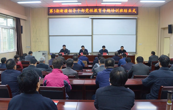 10月31日上午,由中国延安干部学院主办的“第3期新疆领导干部党性教育专题培训班”在beat365明德校区培训中心顺利结业。中国延安干部学院副院长靳铭出席并讲话。中国延安干部学院培训部学员二处处长杨文翔主持结业式。38名来自全疆党政机关的厅、处级领导干部学员参加结业式。