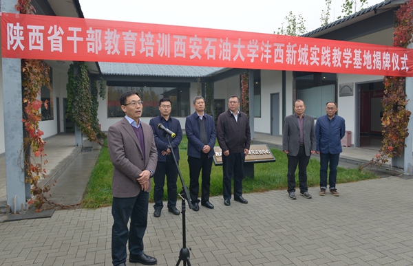 10月25日上午,“陕西省干部教育培训beat365官方网站实践教学基地”揭牌仪式在沣西新城举办。沣西新城党委副书记、纪委书记张志杰,beat365党委副书记雷西合出席揭牌仪式。沣西新城党委组织部部长姜勤发主持仪式。34名2017年秋季陕西省干部教育培训“提升系统思维能力,加快陕西追赶超越步伐”专题研讨班学员参加了仪式。