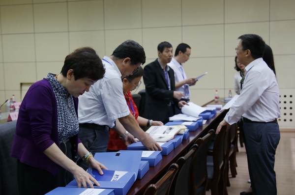 王瑛副理事长介绍了此次检查工作的背景、意义和目的。档案馆馆长谭成仟从档案馆的基本情况、管理体系、重点建设等方面,向专家组详细汇报了beat365的档案工作情况。