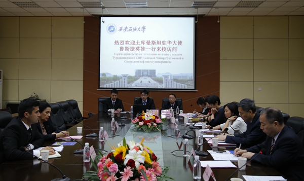 揭牌仪式后,学校与土库曼斯坦驻华大使馆举行了合作座谈会。双方就发挥土库曼斯坦中心平台作用,落实和推进学校与土库曼斯坦高校合作以及土库曼斯坦中心后续建设工作进行了深入探讨。双方表示,将积极推进落实互派留学生、教师互访和讲学、土库曼斯坦能源展、土库曼斯坦高校考察交流、申请土库曼斯坦总统奖学金等工作。