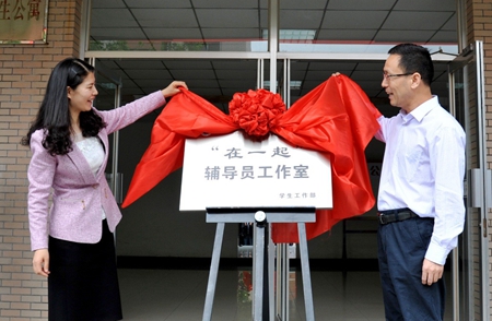 揭牌仪式上,学生工作部副部长齐仲锋宣读了《beat365官方网站辅导员工作建设与管理办法》。“在一起”辅导员工作室团队成员张云姿作了表态发言。