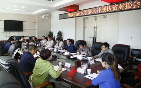 根据近期全省高校结对帮扶贫困县工作会议部署,5月8日,校扶贫领导小组副组长,校党委副书记张木、副校长杨战社带领学校扶贫办公室成员赴永寿县人民政府、永平镇、坚固村进一步开展扶贫结对对接调研。永寿县委常委、副县长樊莉霞及县委县政府有关部门负责人;县委常委、纪委书记张振乾,副县长任各,永平镇镇长秦立飞;坚固村党支部书记成军平、村民委员会主任李小勇等分别与学校对接调研组进行了座谈交流。