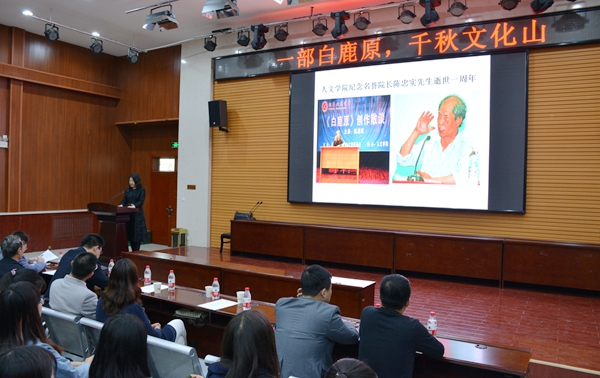 4月26日中午,人文学院在新校区人文经管楼118室举办了以“一部白鹿原,千秋文化山”为主题的纪念名誉院长陈忠实先生逝世一周年活动。党委宣传部、人文学院负责人及300余名师生参加活动,大家抚今追昔,向陈忠实先生表达深深的思念之情。