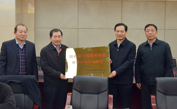 省委组织部干教办副主任郭文超在会上宣读了《关于同意设立陕西省干部教育培训beat365官方网站基地的批复》,王秉琦副部长、郝利生副书记共同为beat365干部教育培训基地授牌。