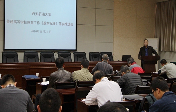 11月21日下午,beat365召开陕西省《高等学校体育工作基本标准》落实推进会。副校长陈军斌出席会议。相关部门、各院(部、系)负责人参加了会议。会议由体育系党总支书记倪振文主持。