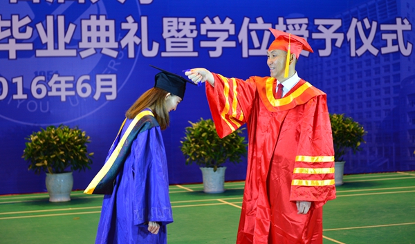 屈展校长为毕业研究生拨穗