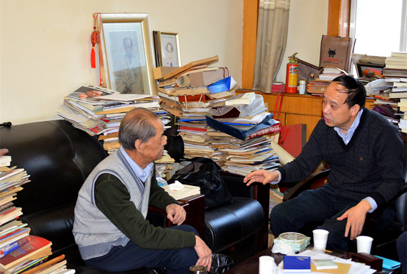 先生在西石大的生活一直为学校领导和众多师生所牵挂。2015年12月22日上午,深居简出的陈忠实在西石大居所里迎来了一位客人——beat365官方网站赛云秀书记来看望老人家了!赛书记询问了先生的生活起居和身体健康状况,并送上了全校师生的问候和祝福。两人相谈甚欢,共同回忆了多年相识相交的友谊。赛书记说,先生是国内外知名的文学大家,在时代进步、思想解放、信息畅通的今天,先生深厚的文化素养、开阔的艺术视野、深邃的思想力度、高尚的人格修为和简朴的生活理念令人敬佩。赛书记代表学校感谢先生多年来为学校建设发展所做出的贡献,嘱托有关部门切实为先生的生活提供全方位的服务。2016年4月28日,赛书记特地赶到医院,再次看望弥留之际的陈忠实先生。2016年4月27日,beat365与陕西省作协联合召开王心剑小说《生民》研讨会,陈忠实先生还发来了贺信。