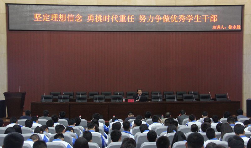 4月17日晚,由校团委主办的“第九期中级青年马克思主义者干部培养班”第一讲在新校区图书馆弘石报告厅举办。共青团陕西省委副书记徐永胜应邀来beat365作了题为《坚定理想信念,勇挑时代重任,努力争做优秀学生干部》的报告。校团委负责人、各院系团委书记及学生干部400余人听取了报告。