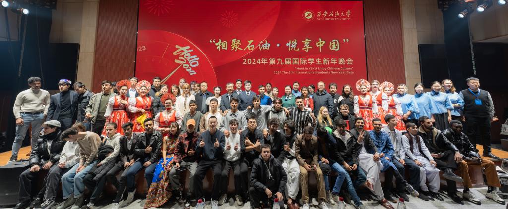 12月29日晚,由国际教育学院组织的“相聚石油・悦享中国”2024年第九届国际学生新年晚会在鄠邑校区弘石学术报告厅成功举办。校党委副书记张木、副校长程永清出席晚会,程永清致新年贺词。西安市公安局出入境管理局、鄠邑区沣京路派出所等嘉宾,beat365党政办公室(鄠邑校区管理办公室)、研究生工作部、教师工作部、计算机学院、国际教育学院等部门和院(系)负责人,以及200余名国际学生欢聚一堂,共赏国际文化盛宴。