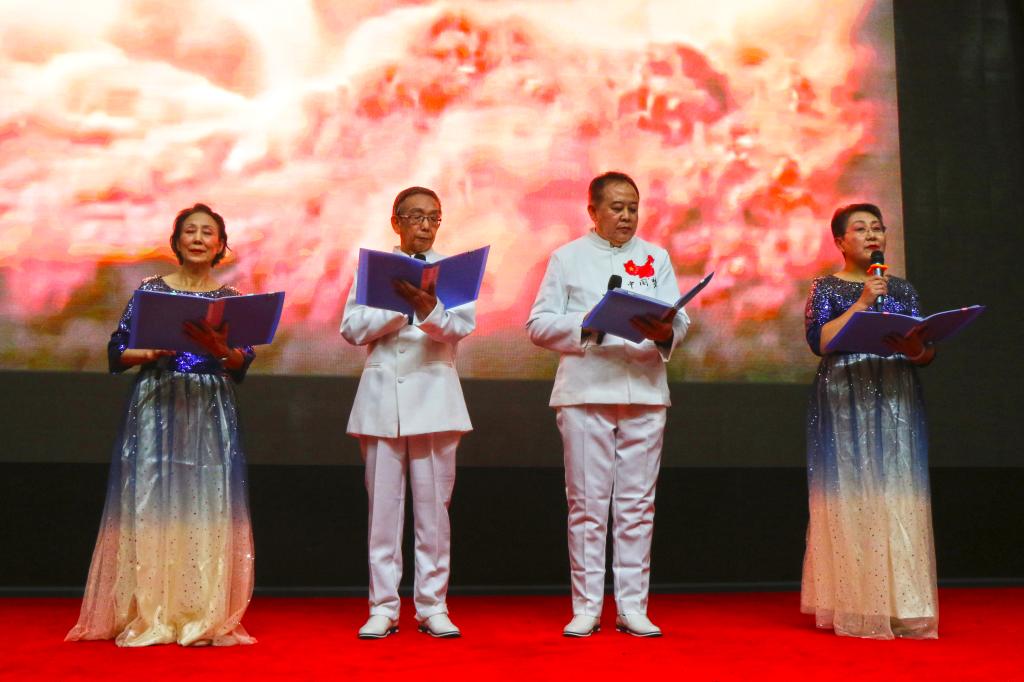 联欢会在老年大学舞蹈协会带来的开场舞《盛世欢歌》中拉开序幕。老年大学朗诵协会的老同志们表演的配乐诗朗诵《我和我的祖国》,表达了离退休老同志对党的无比热爱和深厚感情;古典舞神韵提沉《秀水伊人》、古典舞身韵基训《手眼结合》、蒙古舞基训《硬肩、柔肩、笑肩》、女生小合唱《美丽的左江我们的家乡》、男生小合唱《南屏晚钟》等节目,充分展示了老年大学的教学成果和老同志热爱生活的良好精神面貌;杨氏太极拳28式,葫芦丝合奏《北江美》,展示了离退休职工的多才多艺。老同志们带来的古风瑜伽《鸿雁》,表演者身形柔软,达到了专业水准,赢得了阵阵掌声。大家在一片欢歌笑语声中共同喜迎2024年新年的到来。