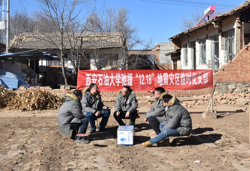 经过对四个受灾严重村庄的实地踏勘,结合近几日的工作实践,先锋队在阳洼村受灾现场,召开了临时党支部第二次会议。先锋队成员对本次震中村庄的震害特征进行了归纳,分析了产生震害的原因。结合学院自身科研特长和已有研究成果,初步商讨了把“既有土木工程结构健康诊断、运维保障与功能提升”作为学院专业建设和科学研究特色方向进行持续建设的可行性。同时,作为延伸,先锋队成员结合石油化工领域工程结构抗震防灾问题,围绕学院科研发展方向和服务社会进行了深入探讨,分析了潜在实现路径。