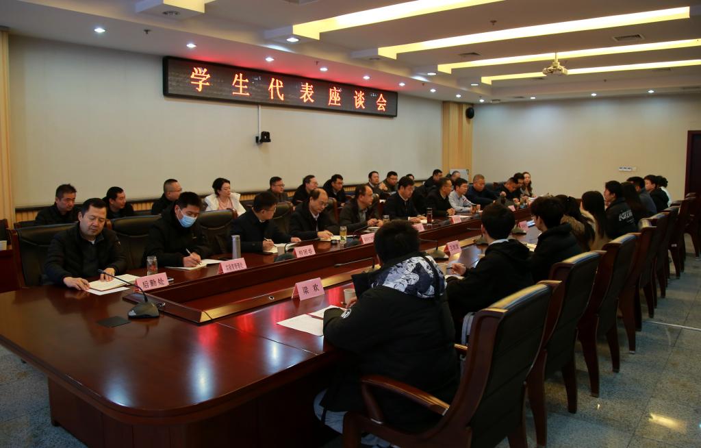 1月12日上午,校长王进富在鄠邑校区图书馆第二会议室与学生代表亲切座谈,座谈会由校党委副书记张木主持。