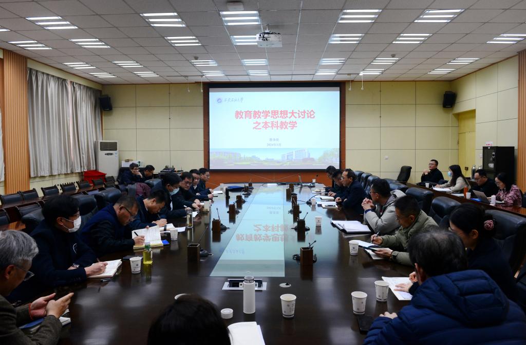 张君涛指出,开展“本科教育教学思想大讨论”活动,是深入学习贯彻习近平新时代中国特色社会主义思想,全面学习宣传贯彻落实党的二十大精神的重要举措,对进一步统一思想、凝聚共识,深化本科教育教学改革,构建高质量教育教学体系,全力做好本科教育教学审核评估评建工作,全面提高人才培养质量具有重要意义。他强调,一是提高政治站位,统一思想,深刻认识大讨论的重要意义。开展本科教育教学思想大讨论,是准确把握学校“办学定位”与“人才培养目标”的需要,也是新时代教育教学改革的迫切需要。二是紧扣主题,以高质量讨论推动本科教育教学高质量发展。围绕从应用型人才培养到学术型人才培养的转变,准确把握人才培养目标定位,转变教育教学理念,构建“五育并举”育人体系;持续推进专业升级改造,不断优化课程建设,推进产教融合、科教融汇,强化培养人才的创新创业能力。三是夯实责任,取得实效。广泛动员,确保全员参与,形成具有自身特色的教育教学改革具体思路与特色做法;强化作风建设,激发担当作为,全力做好审核评估预评估整改工作。