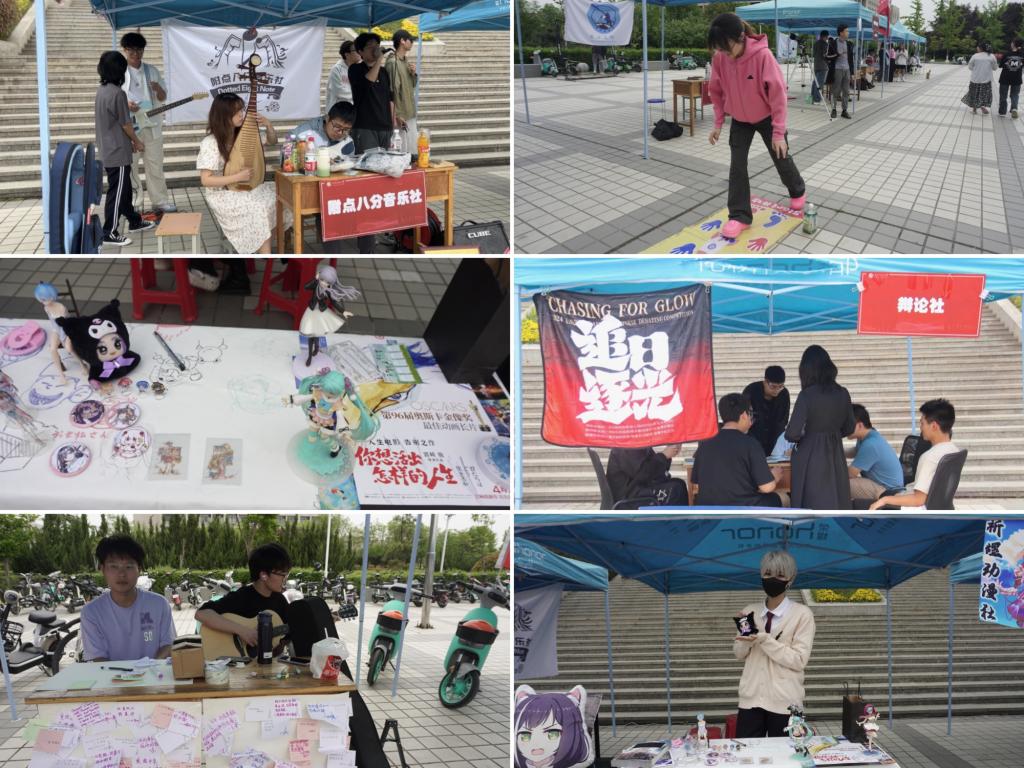 在鄠邑校区图书馆南广场,各学生社团结合自身特色,通过互动体验、问答宣讲、舞台表演等形式向广大同学们展现了beat365学生社团的青春风采。