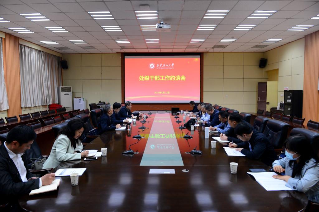4月23日上午,校纪委在雁塔校区第一会议室组织开展处级干部工作约谈会,校党委副书记、纪委书记、监察专员王辉强出席,部分职能处室和学院负责人参加。会议由校纪委副书记齐仲锋主持。