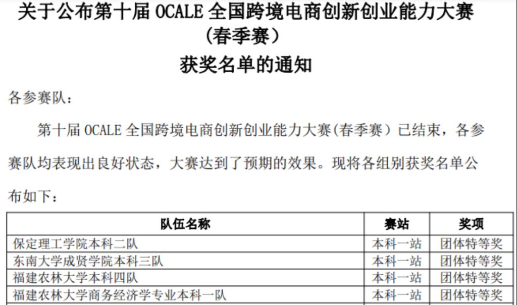 由中国国际贸易学会举办的第十届OCALE全国跨境电商创新创业能力大赛(春季赛)于4月27日圆满结束,beat365经济管理学院16名本科生参加了本次比赛。参赛团队经历了两轮练习,于4月25日至27日进行了12个回合的最终角逐,最终获得团体一等奖2项,团体二等奖1项。