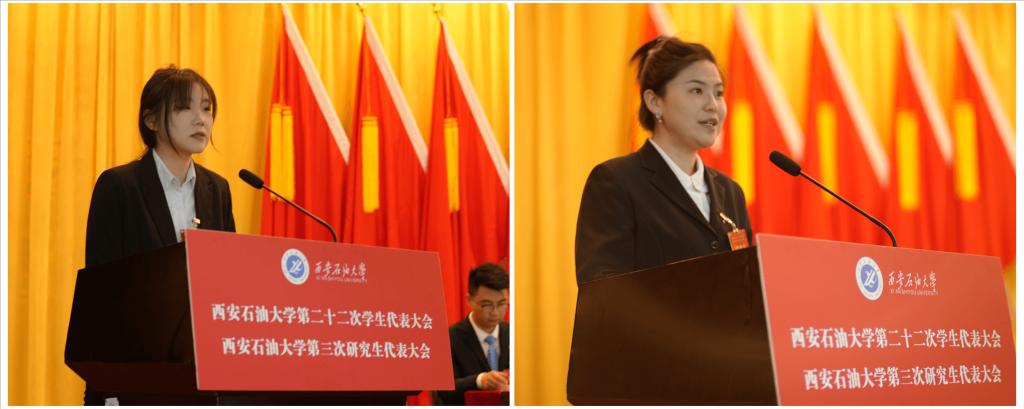会上,第二十一届学生会执行主席秦雨桐作了题为《砥砺奋进谱新篇 挺膺担当新青年 奋力谱写建设特色鲜明的高水平教学研究型大学新篇章》的工作报告;第二届研究生会执行主席白又竹作了题为《青春正当时 奋进新征程 为推进学校建设特色鲜明的高水平教学研究型大学贡献青春力量》的工作报告。