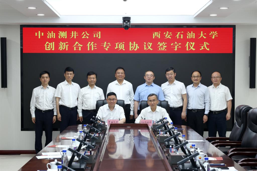 张木介绍了学校人才培养特色、2024届毕业生就业进展,表示要进一步强化有针对性的人才供给,助力企业高质量发展,希望公司在近期和未来的人才招聘工作中给予学校毕业生提供更多机会。中油测井公司总会计师邹荣、副总经理石玉江就深化双方合作提出具体举措。双方科技部门负责同志介绍了校企双方基本情况和科研情况,与会有关部门负责人作了交流发言。张木和石玉江代表校企双方签署了《创新合作专项协议》。