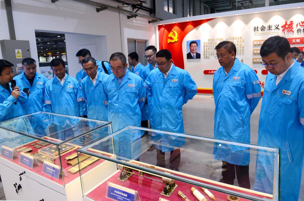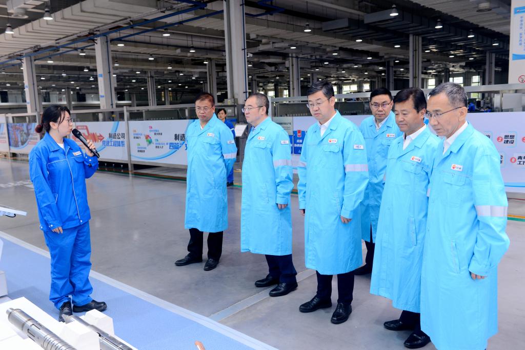 常江、王进富一行在中国石油集团测井有限公司执行董事、党委书记金明权陪同下,参观了公司成套装备产业化工房、智能制造车间,听取公司关键技术产品发展历程、应用情况等方面的介绍,现场观摩了智能制造车间实际运转情况。在园区,金明权向常江、王进富等介绍了超深穿透射孔器穿孔性能,常江、王进富就关心的问题与金明权不时驻足交流。