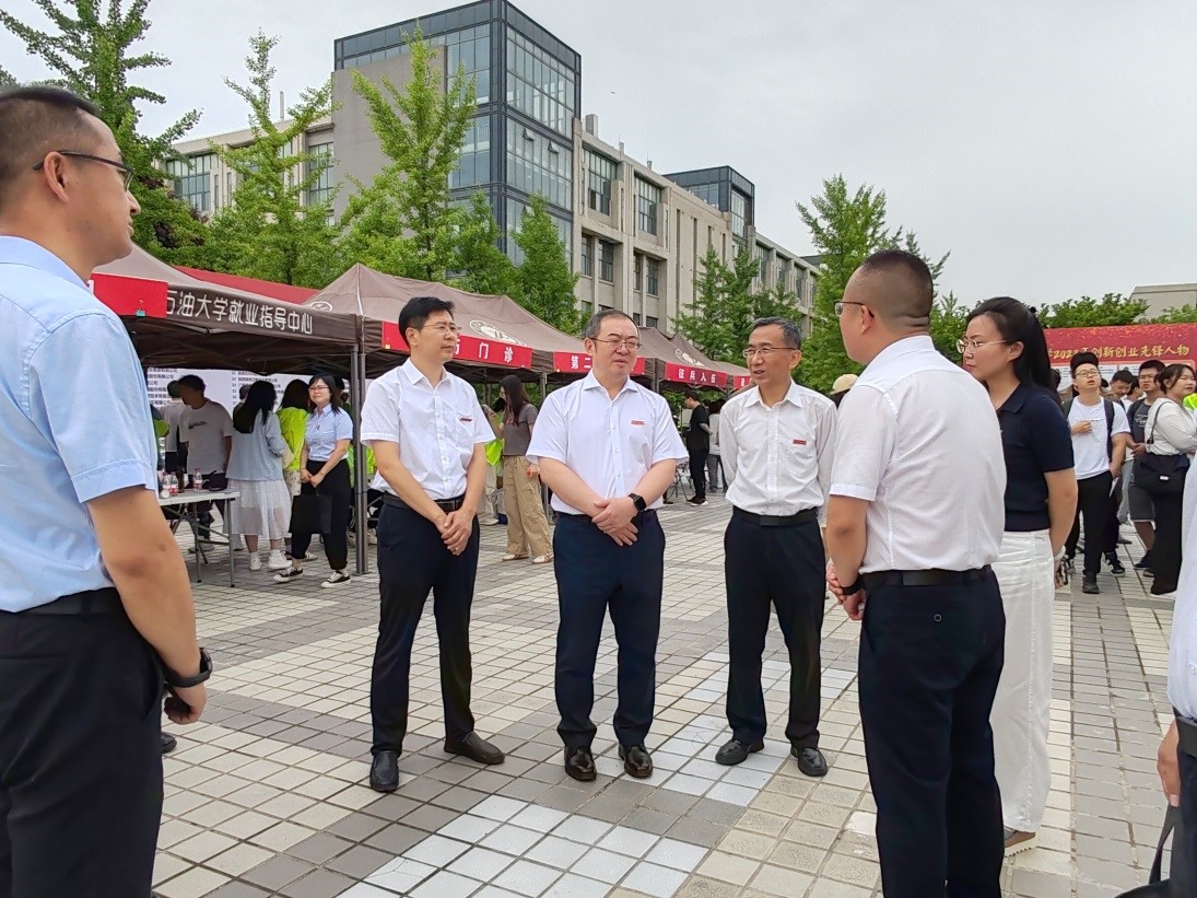 常江、王进富、张木一行深入双选会现场。询问了企业的招聘需求,对用人单位长期以来给予学校就业工作的支持表示感谢,并希望双方能够进一步加强校企合作,共同推动人才培养和就业工作。与求职学生亲切交谈,翻阅毕业生简历,详细了解求职意向和求职进展,鼓励指导他们要树立求职信心,秉承为人诚实、基础扎实、作风朴实、工作踏实、开拓创新的“四实一新”优良品质,发扬铁人精神,端正就业观念,将小我融入大我,将个人发展同国家社会发展相结合,积极投身重点领域、重点行业、城乡基层和中小微企业就业创业。