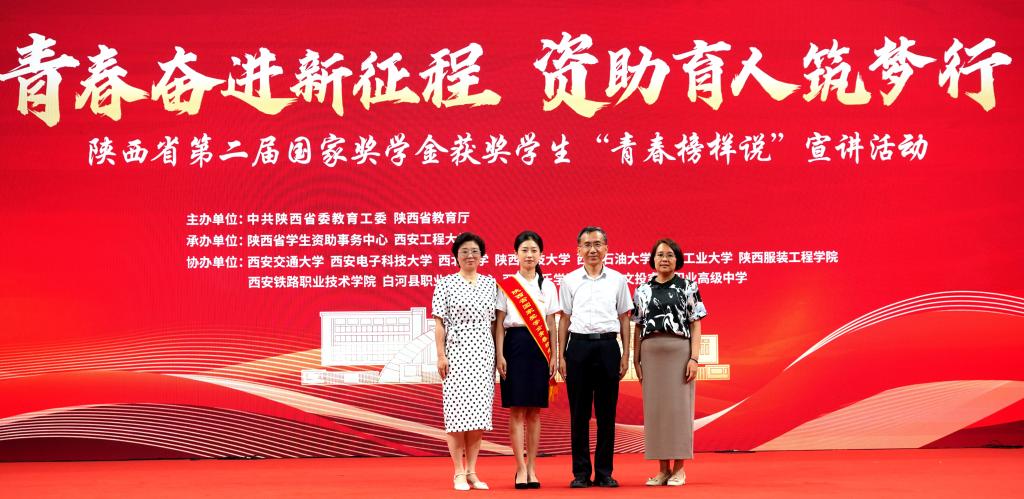 6月13日下午,陕西省第二届国家奖学金获奖学生“青春榜样说”宣讲活动在西安工程大学临潼校区举行。教育部全国学生资助管理中心副主任涂义才出席活动并致辞。省委教育工委委员、省教育厅副厅长何玉麒出席并讲话。