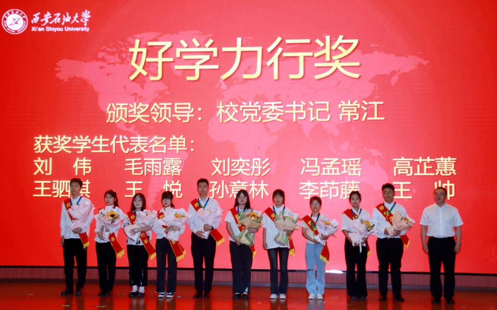 校党委书记常江在讲话中向受到表彰的优秀毕业生表示祝贺,向全体2024届毕业生致以最诚挚的祝福。他指出,本次颁奖典礼是在全校学生中营造崇尚优秀、学习优秀、争当优秀“比学赶帮超”浓厚氛围的重要举措,也是展示学校毕业生时代风采,激励广大同学建功立业、奉献青春的重要途径。他希望,全体2024届毕业生,要有永葆热爱、怀揣梦想的激情,要有行而不辍、履践致远的毅力,要有继往开来、乘风破浪的勇气,用“好学力行”的品德来修身,用“自强不息”的精神去奋斗,并向全校学生寄语:一是让学习成为一种习惯。希望同学们树立终身学习的理念,不断丰富知识,全方面提升自我,努力学习科学文化知识,积极投身实践锻炼,注重独立思考,做到学思结合,知行统一,以实际行动诠释“好学力行、自强不息”的校训精神;二是让卓越成为一种追求。希望同学们赓续红色血脉,传承铁人精神,不断挑战自我,实现自我超越,创造更大辉煌,在追求卓越的道路上,不仅要有海纳百川的胸怀,更要以勤奋和踏实的态度面对每一个挑战,创造属于自己的精彩人生;三是让感恩成为一种品质。希望同学们常怀感恩之心,感谢父母的养育之恩、老师的教诲之情、同学的帮助之谊,也要敬畏自然、敬畏生命,珍惜我们所拥有的一切,鼓励大家在逆境时学会善待自己,给自己信心和勇气,在顺境时更要善待他人,以谦逊和善良的心去帮助更多的人,以乐观积极的心态影响身边的人和事;四是让坚持成为一种能力。希望同学们能深刻理解坚持的重要性,并作为优秀的品质贯穿自己的人生,在人生的旅途中,要牢记“人在事中磨”,塑造坚韧不拔的意志和勇往直前的精神,希望同学们直面“内卷”,远离“佛系”,拒绝“躺平”,决不“划水”,保持对目标的执着追求,克服困难,实现梦想。
