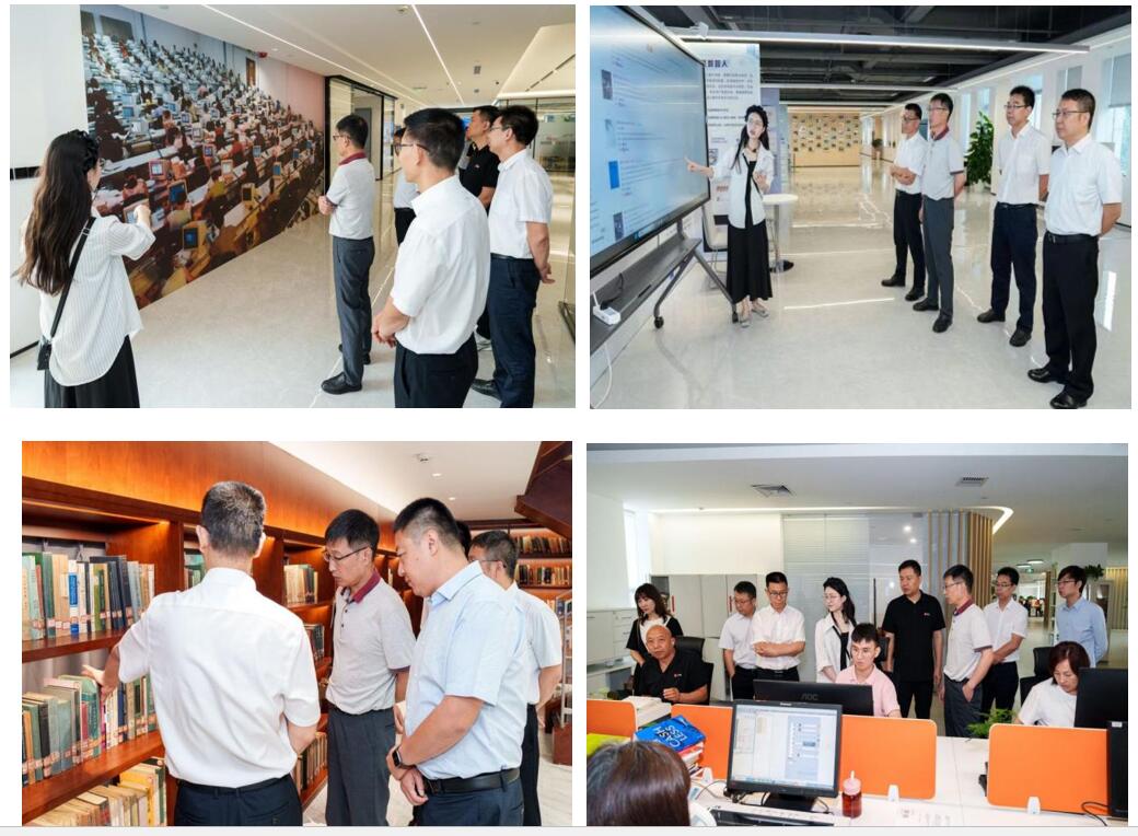 会前,在超星集团有关领导的陪同下,苏文甫一行参观了超星数字园区,实地考察了超星新一代数字化平台与资源建设,AI技术在教育场景下的探索与应用,并体验了AI馆员、元宇宙图书馆、智慧教室等未来学习中心的最新建设成果。