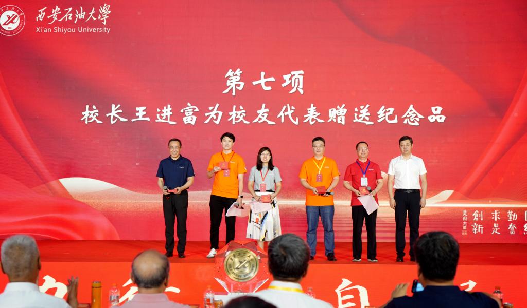 校长王进富致辞,对专程返校“回家”的校友及家属们致以热烈的欢迎,向长期以来关心母校发展的广大校友表达衷心的感谢。他以《忆芳华 致青春 向未来》为题,从“历史与传承”“成长与记忆”“未来与期待”三个方面向校友们报告了学校的发展历程、办学成绩和奋斗目标。他强调,学校将进一步贯彻落实第三次党代会精神,通过六大行动全面提升人才培养质量水平、推动学科发展进阶升级、构建科技创新服务体系、打造有竞争力人才队伍、拓展对外合作发展格局、提升学校持续发展动能,实现学校高质量发展。他表示,学校的发展离不开广大校友的关注和支持,学校将积极为校友搭建平台、提供资源、共享信息,以更有温度的服务、更有深度的交流、更有力度的合作,建强校友与母校发展共同体,携手开创校友个人事业和学校高质量发展新局面。最后,他向全体校友提出倡议:一是深度互动,构建情感共鸣、价值共同、信息共通、资源共享、发展共赢的命运共同体;二是加大支持,在重大项目实施、科技平台建设、科研项目合作及毕业生就业等方面给予学校更多支持;三是讲好故事,讲好西石大人胸怀大局、扎根西北、拼搏奉献的故事,讲好西石大人锚定强国战略、服务能源行业、培育杰出人才的故事。