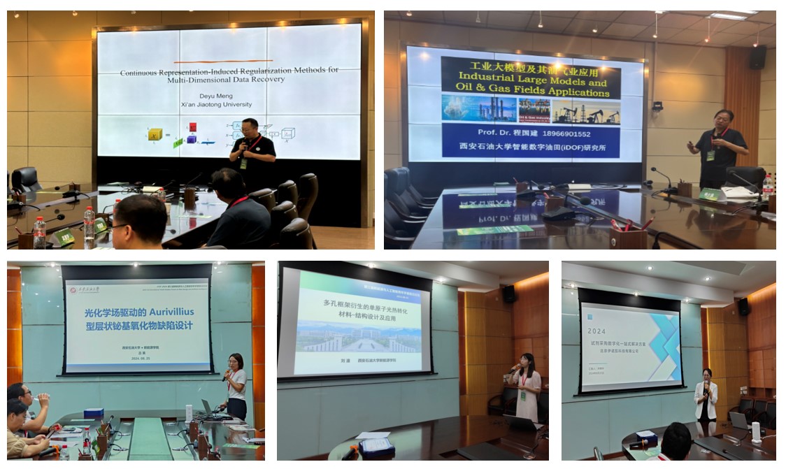 在“新能源+ ”“人工智能+ ”两个分论坛中,来自西安交通大学、西安理工大学及beat365的32名师生做了专题报告,报告由折延宏、高国旺、肖美霞、安敏荣、王磊、吕英、毕佳颖、刘潼八位教师主持。国家级高层次人才、西安交通大学孟德宇教授做了题为“Continuous Representation-Induced Regularization Methods for Multi- Dimensional Data Recovery”的报告;beat365程国建教授做了题为“工业大模型及其油气业应用”的报告;beat365吕英副教授做了题为“光化学场驱动的Aurivillius型层状铋基氧化物缺陷设计”的报告;beat365青年教师刘潼做了题为“多孔框架衍生的单原子光热转化材料-结构设计及应用”的报告。另外,西安建筑科技大学、厦门理工学院、北京伊诺凯科技有限公司等单位及beat365研究生做了28个专题报告。
