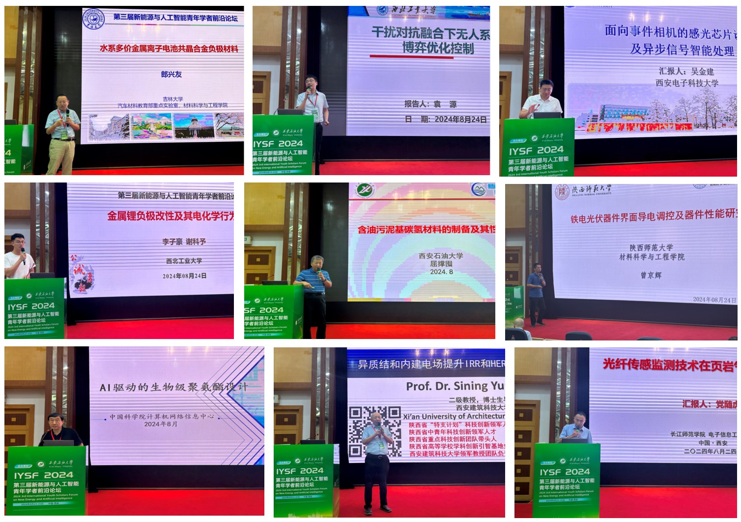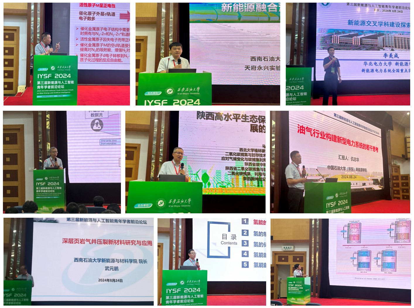 国家杰青、长江学者、吉林大学蒋青教授做了题为“电化学合成氨钼基催化材料的设计与制备”的报告;国家杰青、广东省人民医院主任医师刘再毅教授做了题为“肿瘤多模态影像AI研究进展”的报告;国家杰青、长江学者、西南石油大学副校长周莹教授做了题为“新能源融合油气资源开发利用”的报告;长江学者、国家万人计划科技领军人才、华北电力大学新能源学院院长李美成教授做了题为“新能源交叉学科建设探索与实践”的报告;国家高层次人才、西北大学碳中和学院首席科学家马劲风教授做了题为“陕西高水平生态保护与绿色高质量发展的路径”的报告;中国石油大学(华东)新能源学院副院长仉志华教授做了题为“油气行业构建新型电力系统的若干思考”的报告;西南石油大学新能源与材料学院院长武元鹏做了题为“油气行业高校新能源学科专业发展探索与实践”的报告;中国石油大学(北京)杨帆教授做了题为“氢能产业发展现状与展望”的报告;国家百千万人才工程入选专家、西安理工大学李喜飞教授做了题为“锂离子电池三元正极材料界面改性的研究”的报告;国家万人计划科技创新领军人才、长江学者、国家优青、吉林大学郎兴友教授做了题为“水系多价金属离子电池共晶合金负极材料”的报告;国家优青、西北工业大学袁源教授做了题为“干扰对抗融合下无人系统博弈优化控制”的报告;国家优青、西安电子科技大学吴金建教授做了题为“向事件相机的感光芯片设计及异步信号智能处理”的报告;国家级高层次人才、西北工业大学谢科予教授做了题为“金属锂负极改性及其电化学行为调控”的报告;陕西师范大学材料科学与工程学院院长曾京辉教授做了题为“铁电光伏器件界面导电调控及器件性能研究”的报告;国家百千万人才工程入选专家、beat365官方网站屈撑囤教授做了题为“含油污泥基碳氢材料的制备及其性能研究”的报告;中科院百人计划(A类)杨小渝教授做了题为“智算驱动的生物基聚氨酯设计”的报告;陕西省“特支计划”科技创新领军人才、西安建筑科技大学云斯宁教授做了题为“异质结和内建电场提升太阳电池和制氢催化剂的性能”的报告;长江师范学院电子信息工程学院院长党随虎教授做了题为“光纤传感监测技术在页岩气开发中的应用”的报告。
