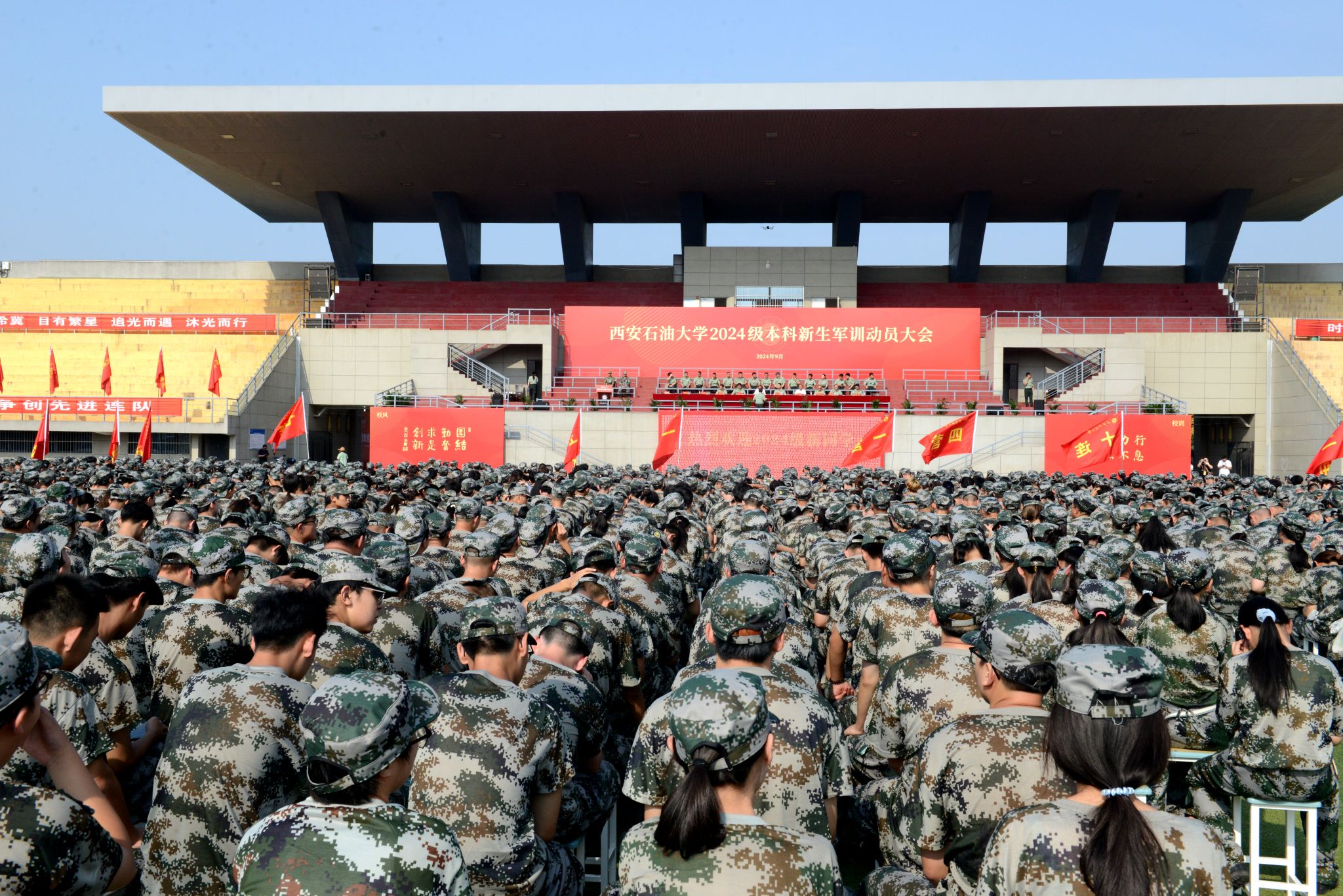 本次军训为期14天,军训旅下设4个营、12个连、40个排,除了进行军事技能的学习和训练,还将对全体新生开展石油精神教育、校史校情教育、学籍教育、专业教育、卫生健康教育和安全教育等。